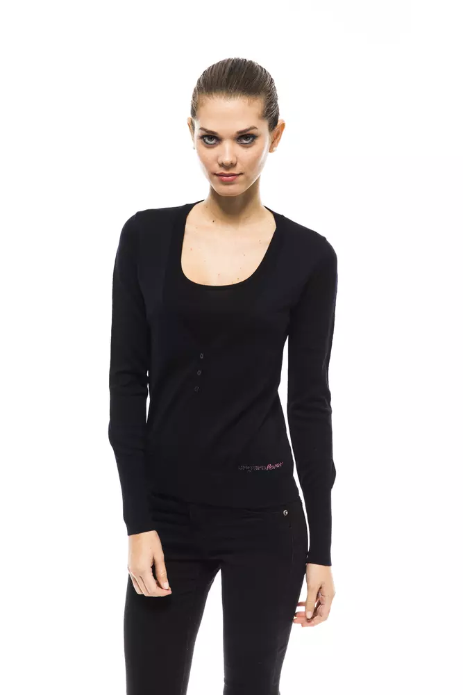 Indulge in the understated luxury of Ungaro Fever’s V Neck Sweater. This chic piece combines timeless style with cozy comfort, boasting a beautiful blue shade that commands attention while remaining effortlessly elegant. Crafted with a harmonious blend of wool and acrylic, this sweater promises warmth and softness, making it an ideal choice for cooler days or breezy nights. Adorned with a unique logo embellished with applications, it adds a touch of designer flair to your ensemble. Perfect for layering or as a standalone statement, Ungaro Fever invites you to elevate your wardrobe with this versatile addition.