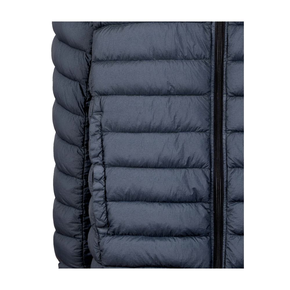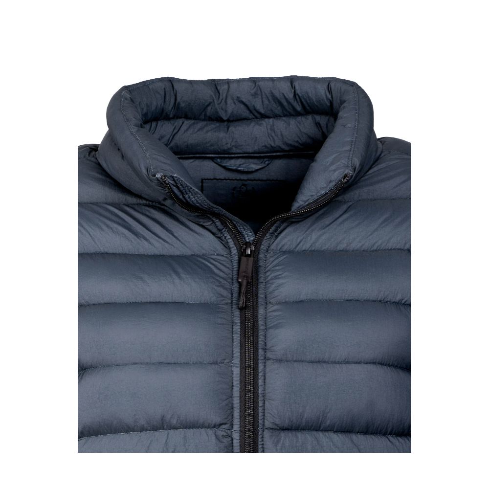 Introducing the latest in sophisticated outerwear, the Centogrammi garment-dyed nylon vest. Fully lined with plush duck down padding, this vest combines warmth with style effortlessly. A smooth zip closure and two secure side pockets with button closure make this vest both practical and fashionable. The vibrant blue shade adds a pop of color to any ensemble, making it a versatile addition to your wardrobe.