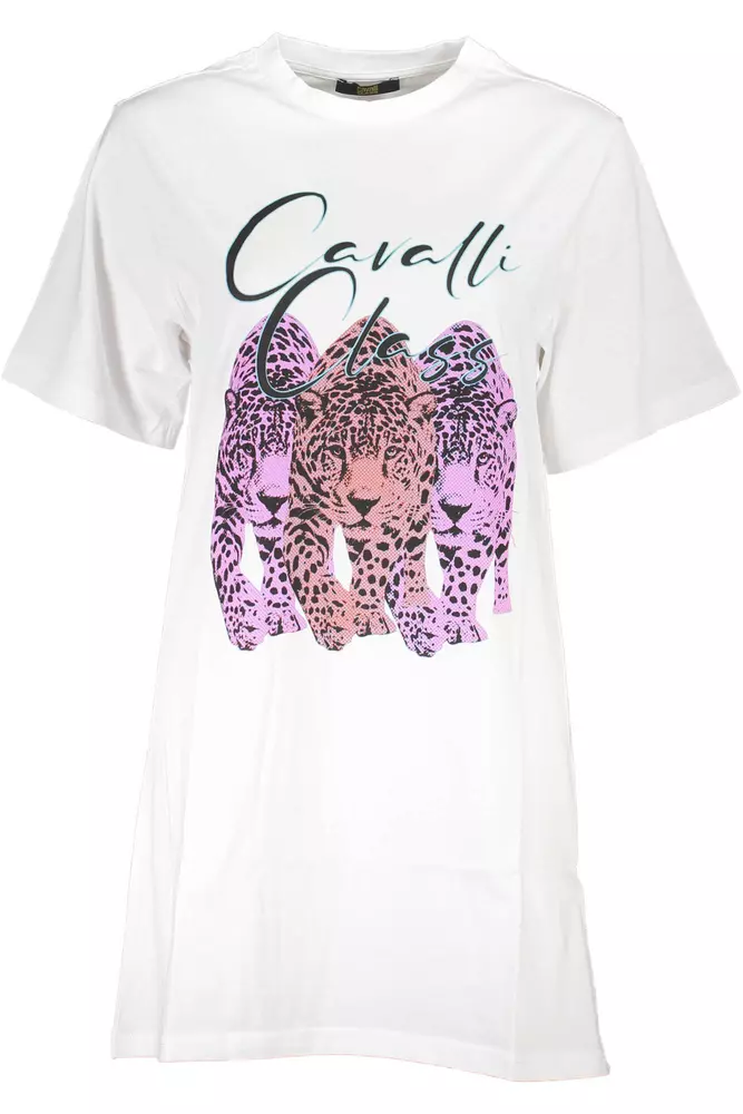 Chic White Cotton Dress with Iconic Print