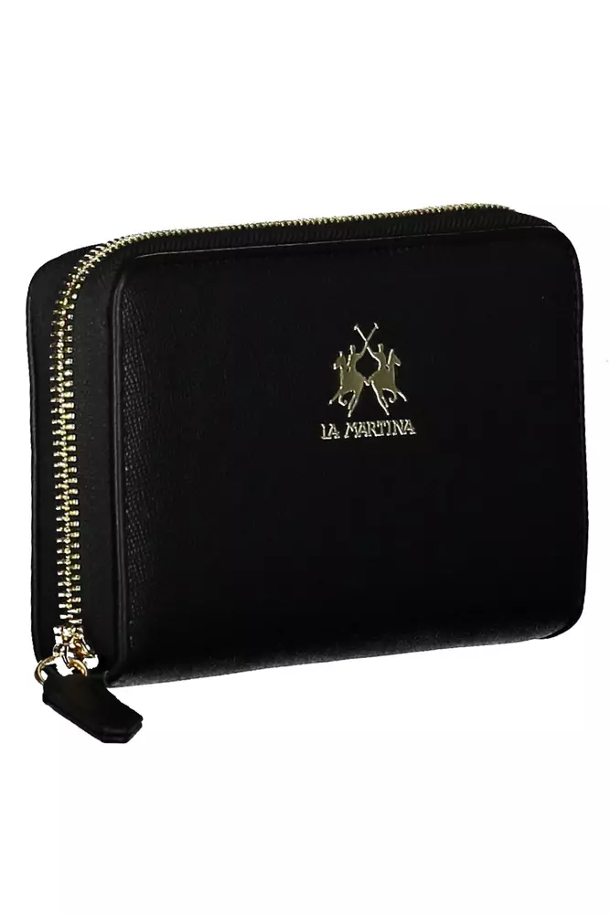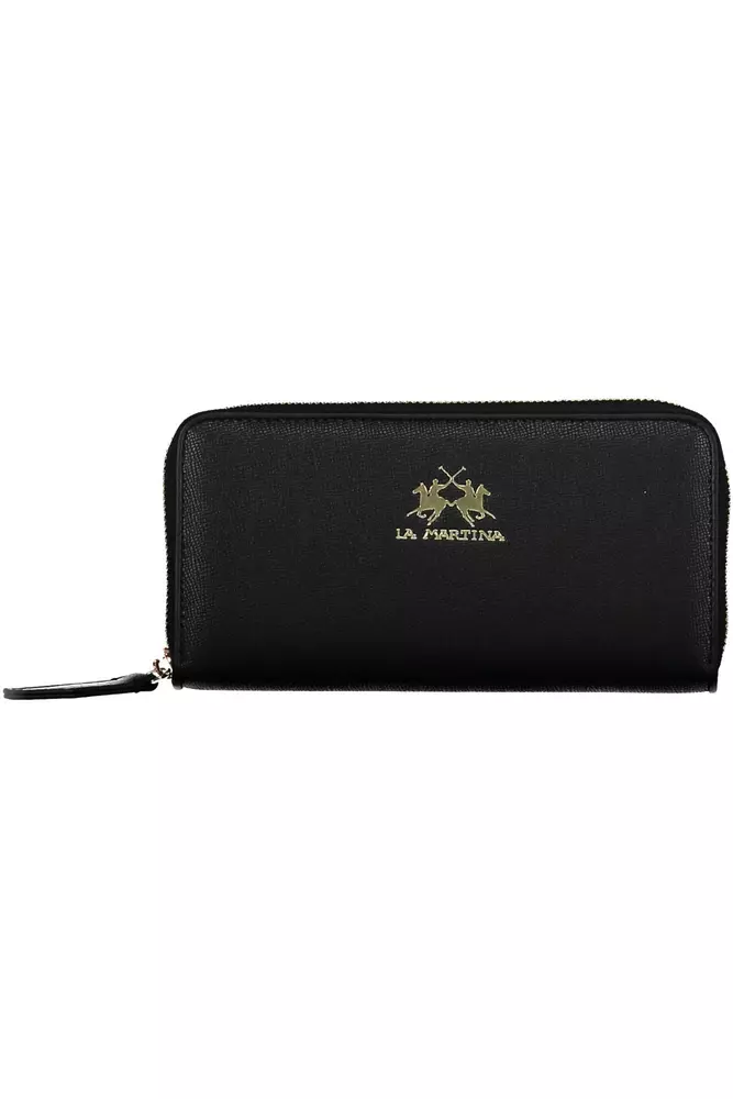 Discover the fusion of functionality and style with the La Martina wallet. Designed for the savvy individual, this wallet boasts four compartments, a dedicated coin purse, and doubled spaces for your cards, all secured with a sleek zip closure. The black color adds a touch of elegance, while the embossed logo provides a distinguished finish. Whether you’re running errands or dressing up for a special occasion, this wallet merges practicality with La Martina’s signature sophistication.