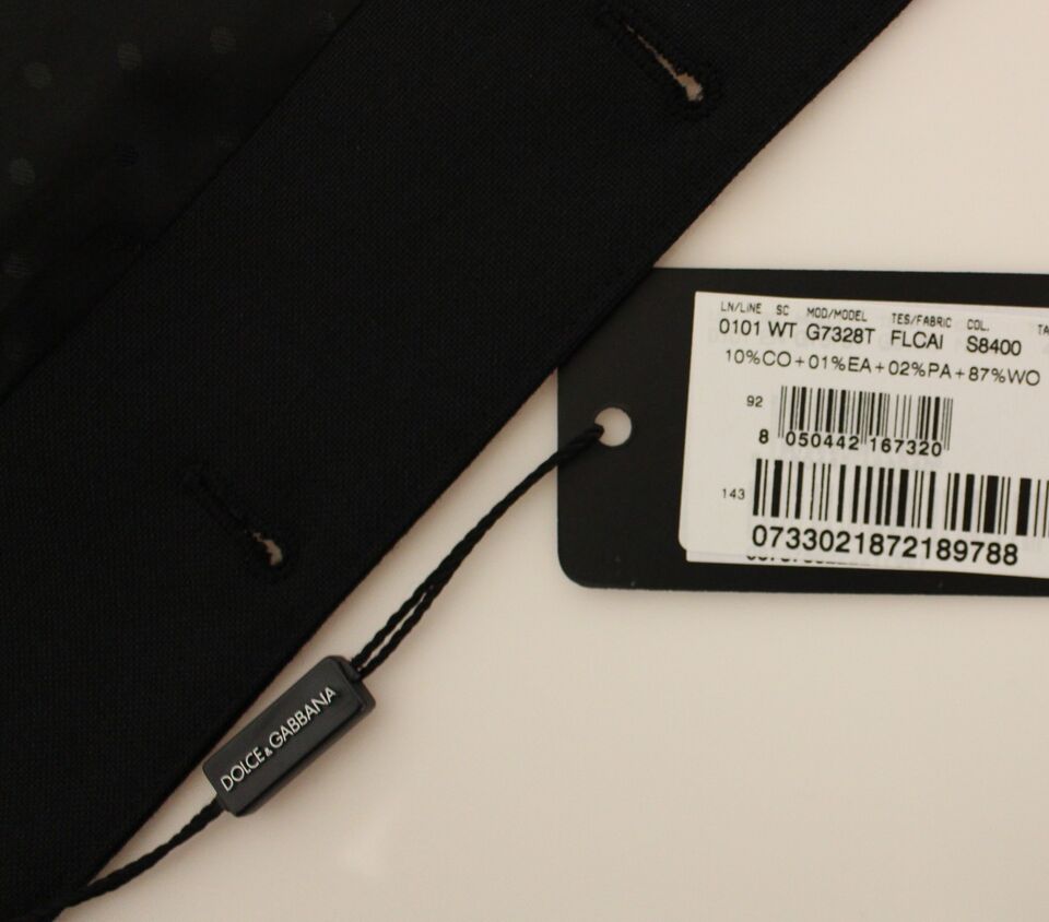 Exude sophistication with this stunning black dress vest from the prestigious MainLine collection by Dolce & Gabbana. Perfect for formal events or for elevating your everyday style, this vest is expertly crafted in Italy, featuring a sleek single-breasted design, an adjustable back waist strap for the perfect fit, and a full front button closure. The luxurious blend of wool and silk, accented with the brand’s signature logo details, makes this piece a timeless addition to any wardrobe.