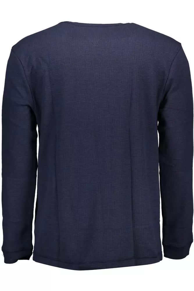 Elegant Blue Long-Sleeved Sweater with Logo Embroidery