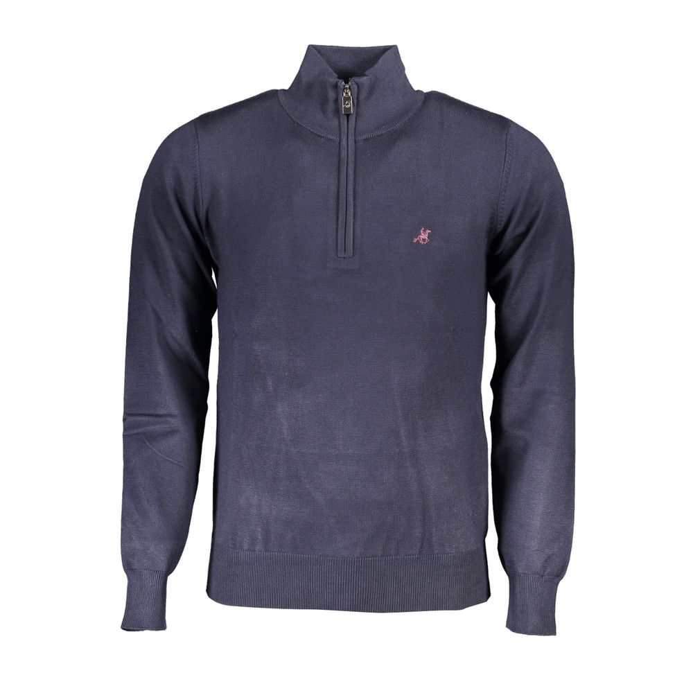 Elegant Half-Zip Blue Sweater with Embroidered Logo
