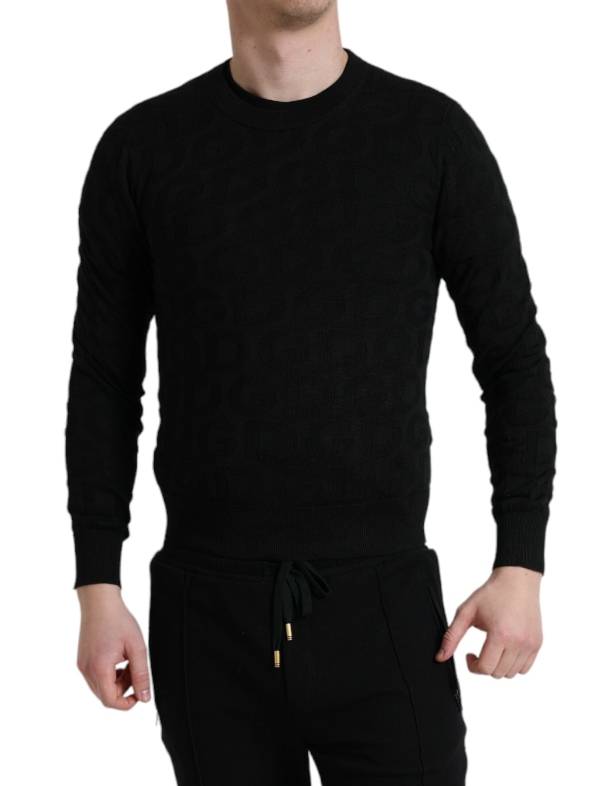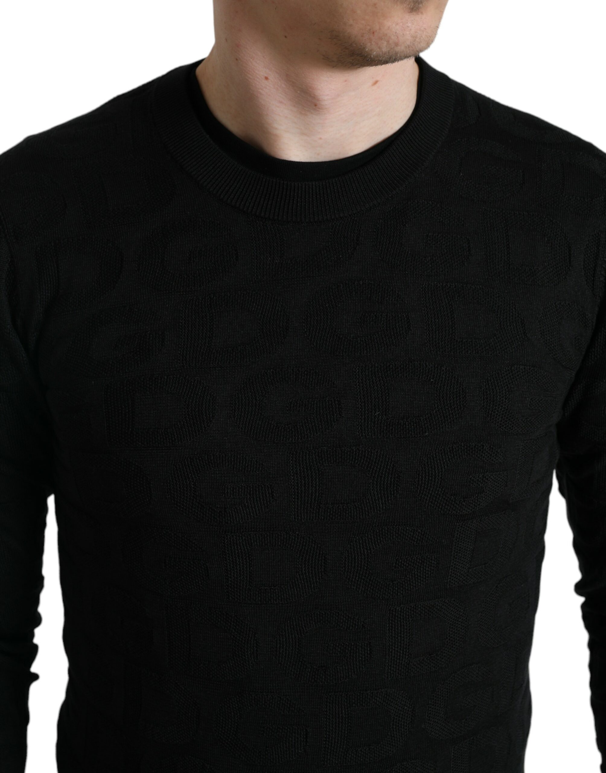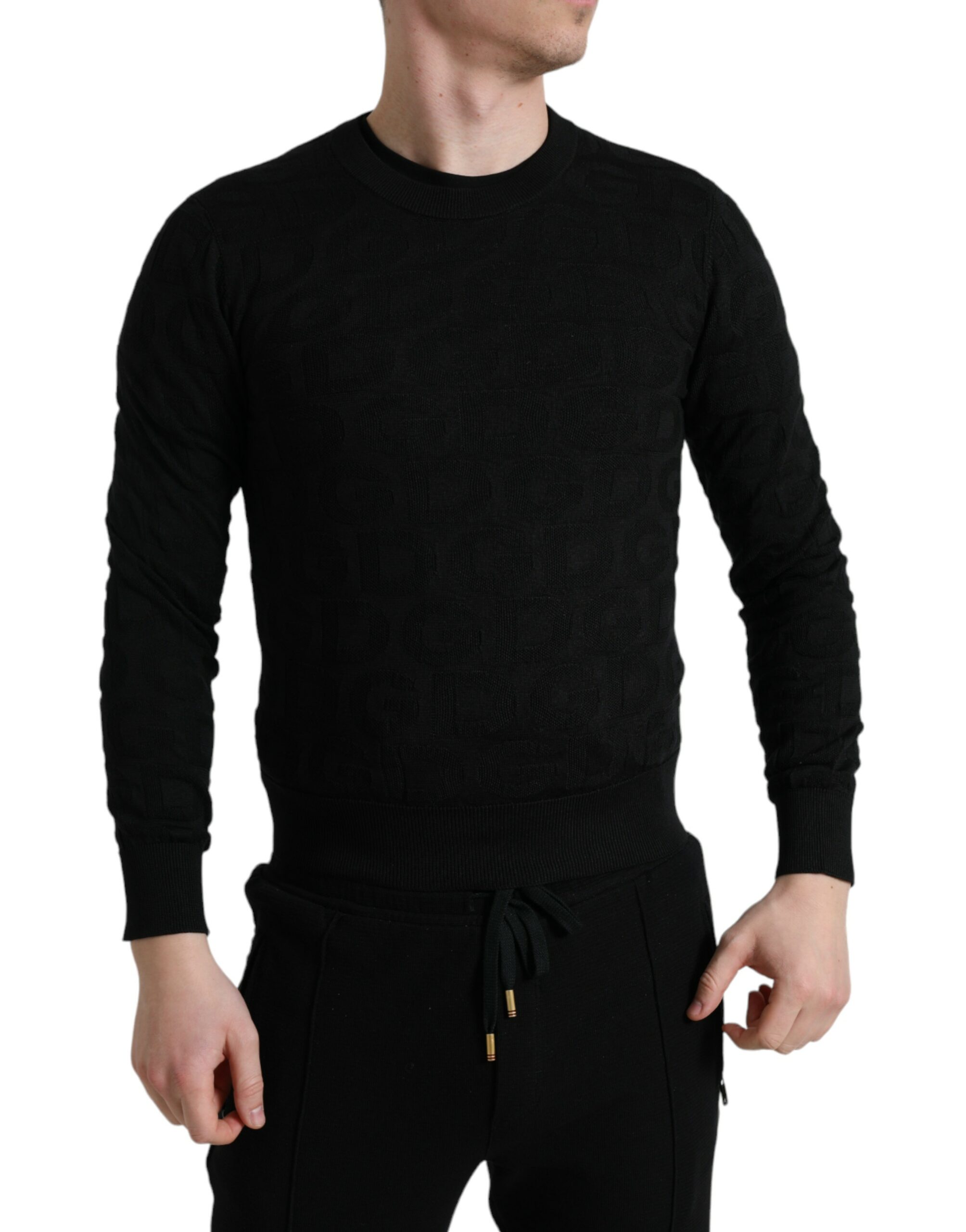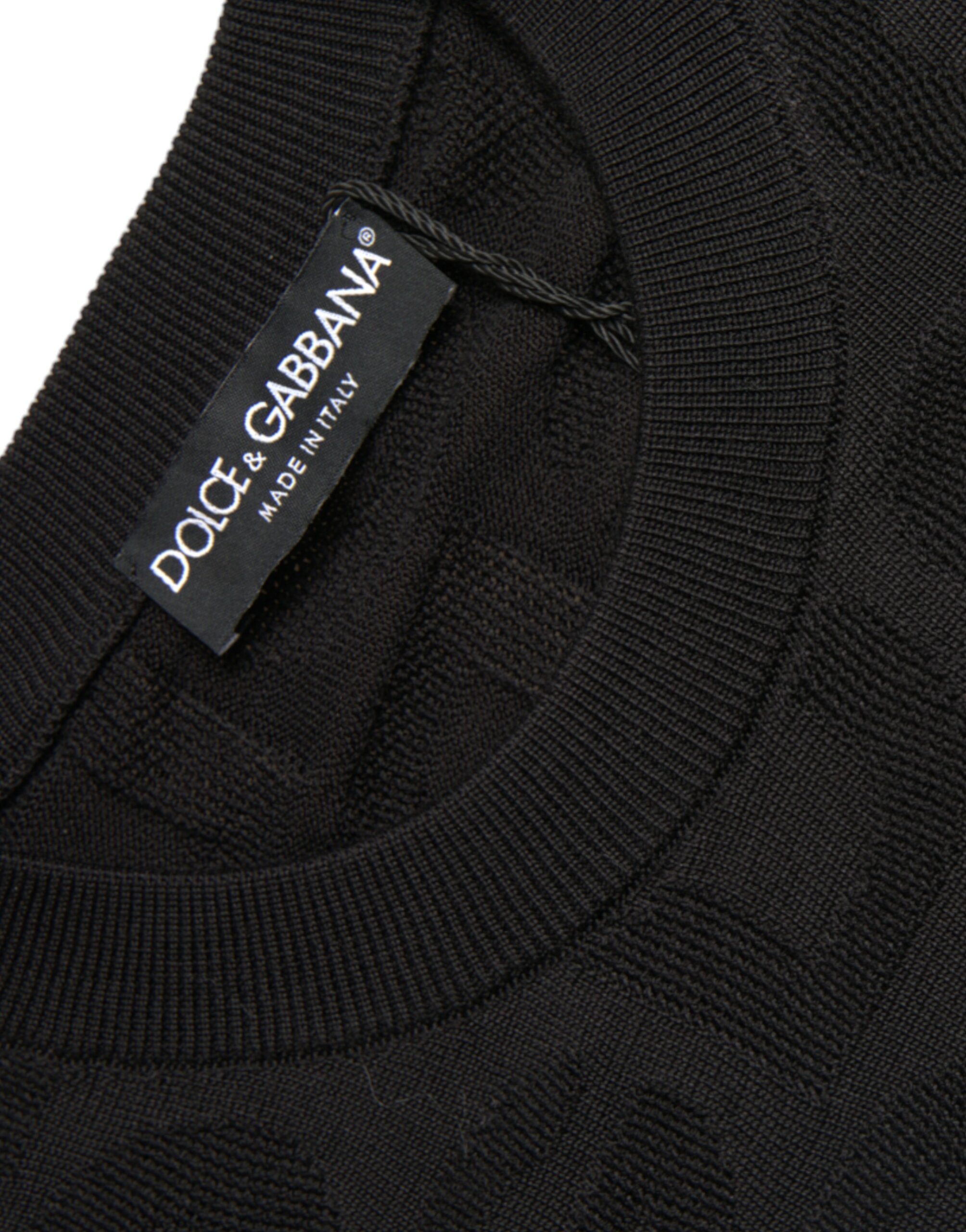 Indulge in the epitome of luxury with this 100% authentic, new with tags silk crewneck sweater from the esteemed house of Dolce & Gabbana. This Italian-made pullover defines sophistication, featuring ribbed trims, a sleek black hue, and subtle logo details. Its mid-weight knit ensures a versatile wear for those looking to add an air of elegance to their wardrobe. Perfect for an impeccable gentleman’s attire.