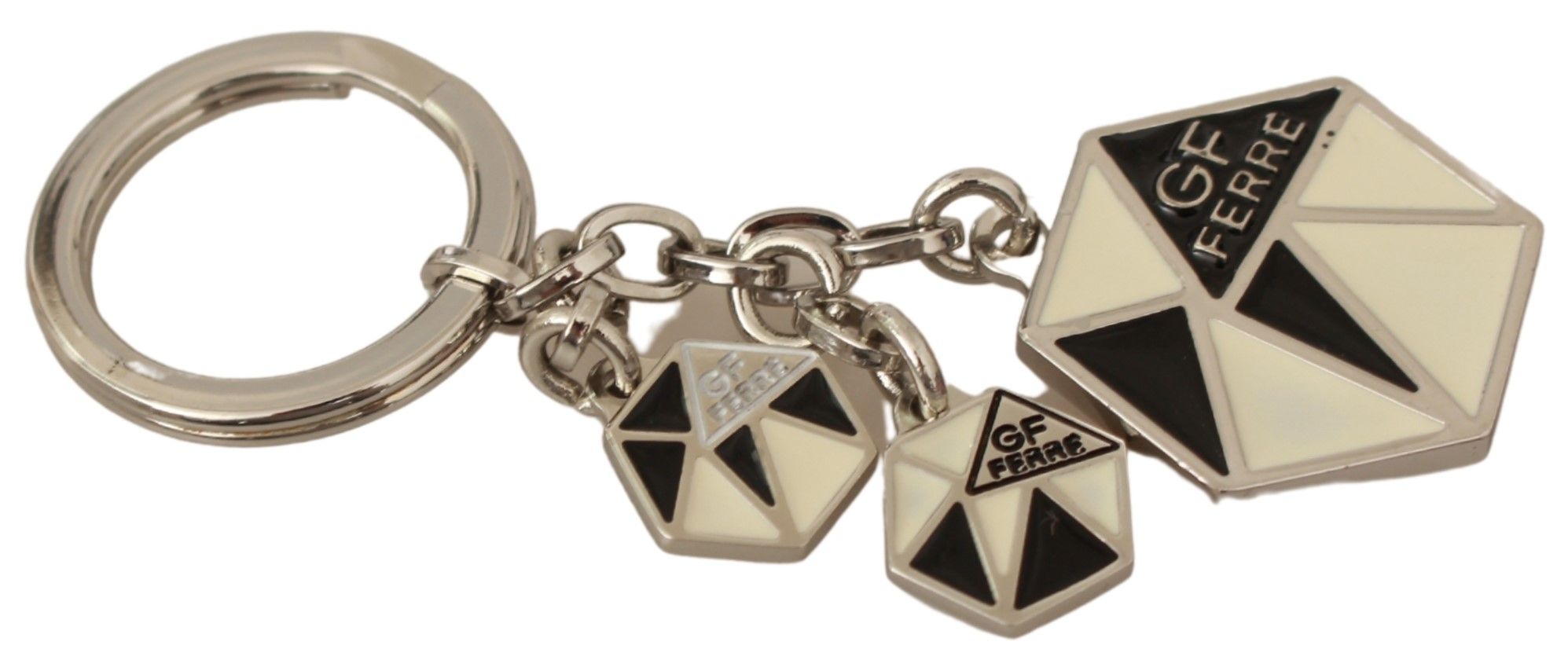 Distinguish yourself with this top-tier accessory. An authentic GF Ferre keychain that is the epitome of elegance with its beige and black hues, paired with the durability and shine of steel and metal construction. This Italian-made piece promises to add a touch of sophistication to your essentials, featuring the iconic GF Ferre logo meticulously engraved on the hardware for an exclusive touch. Perfect as a gift or a personal indulgence.