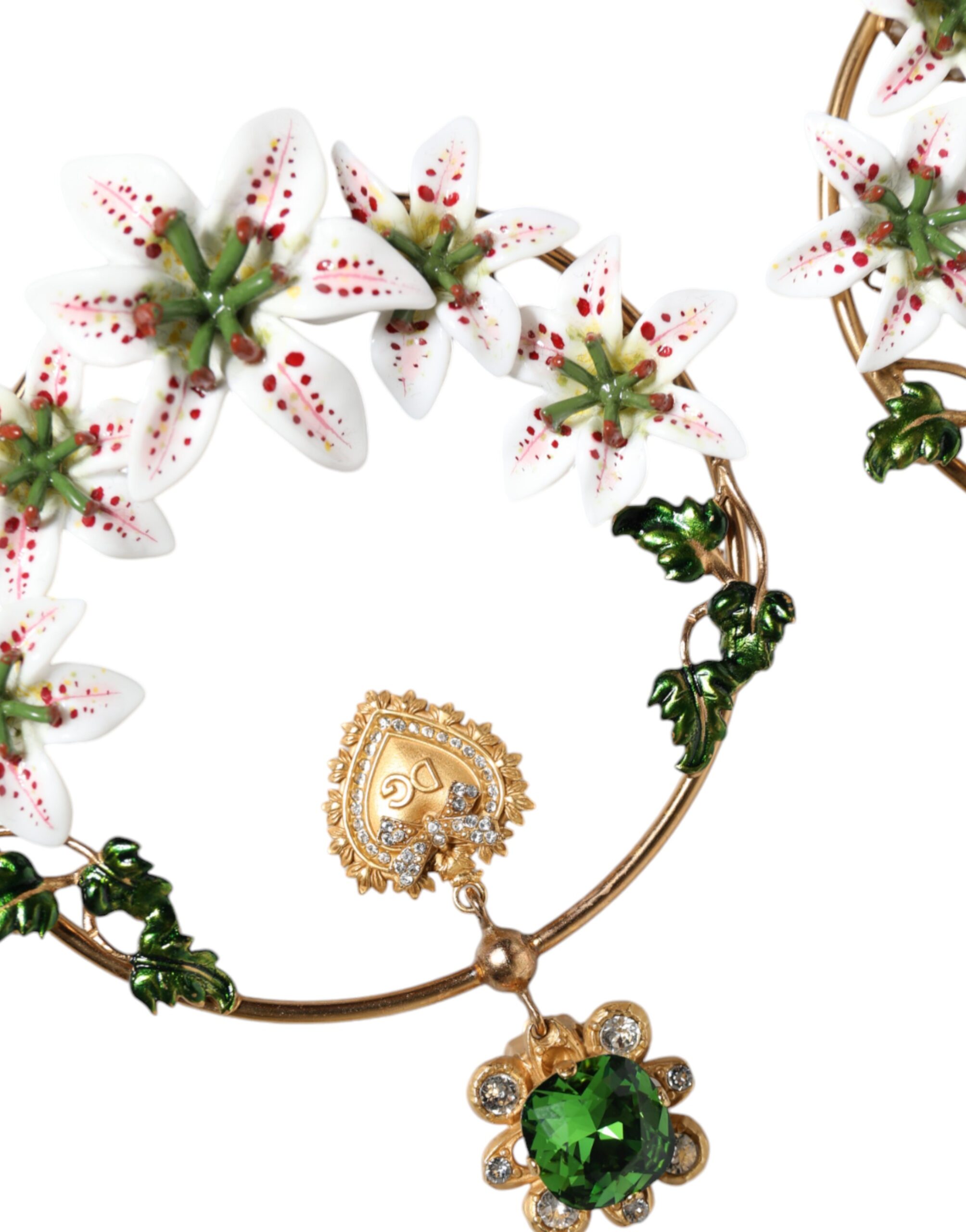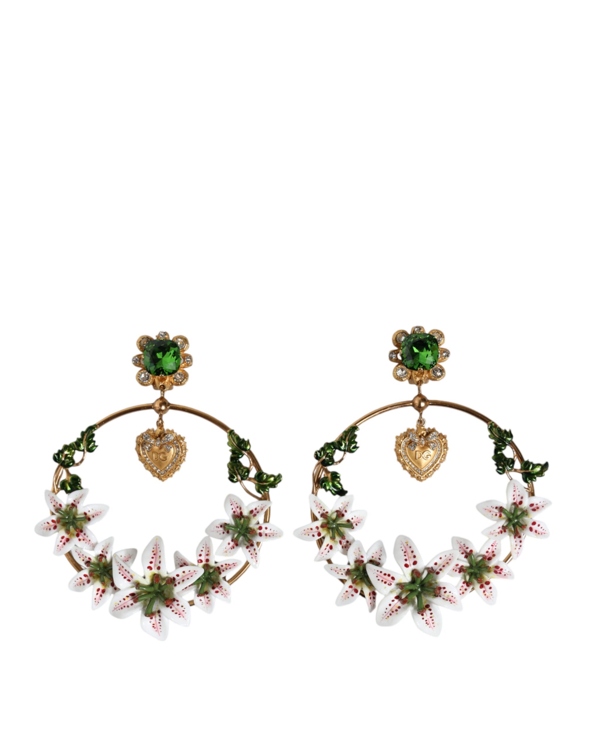 Gorgeous brand new with tags, 100% Authentic Dolce & Gabbana flower and heart earrings adorned with crystals in green.