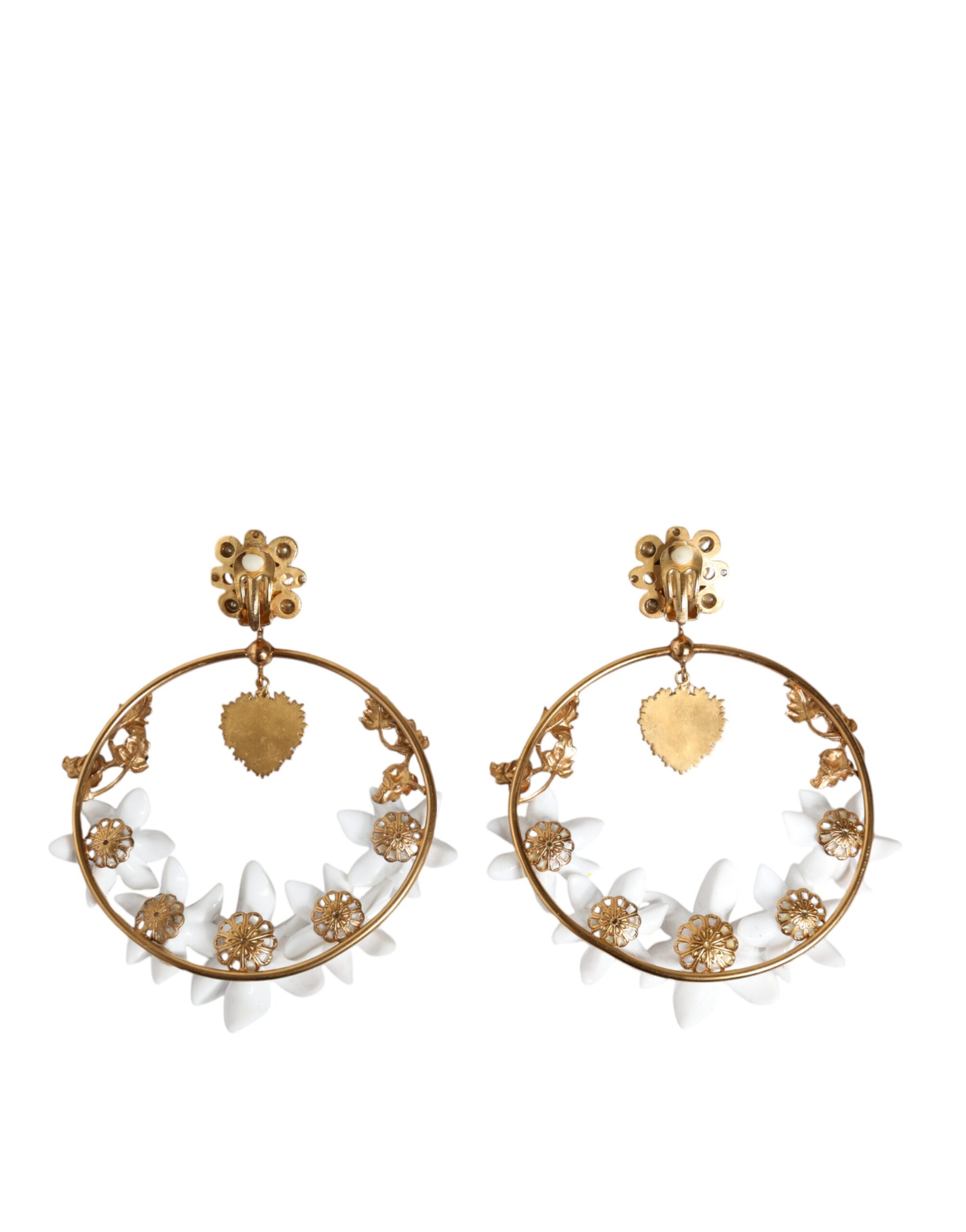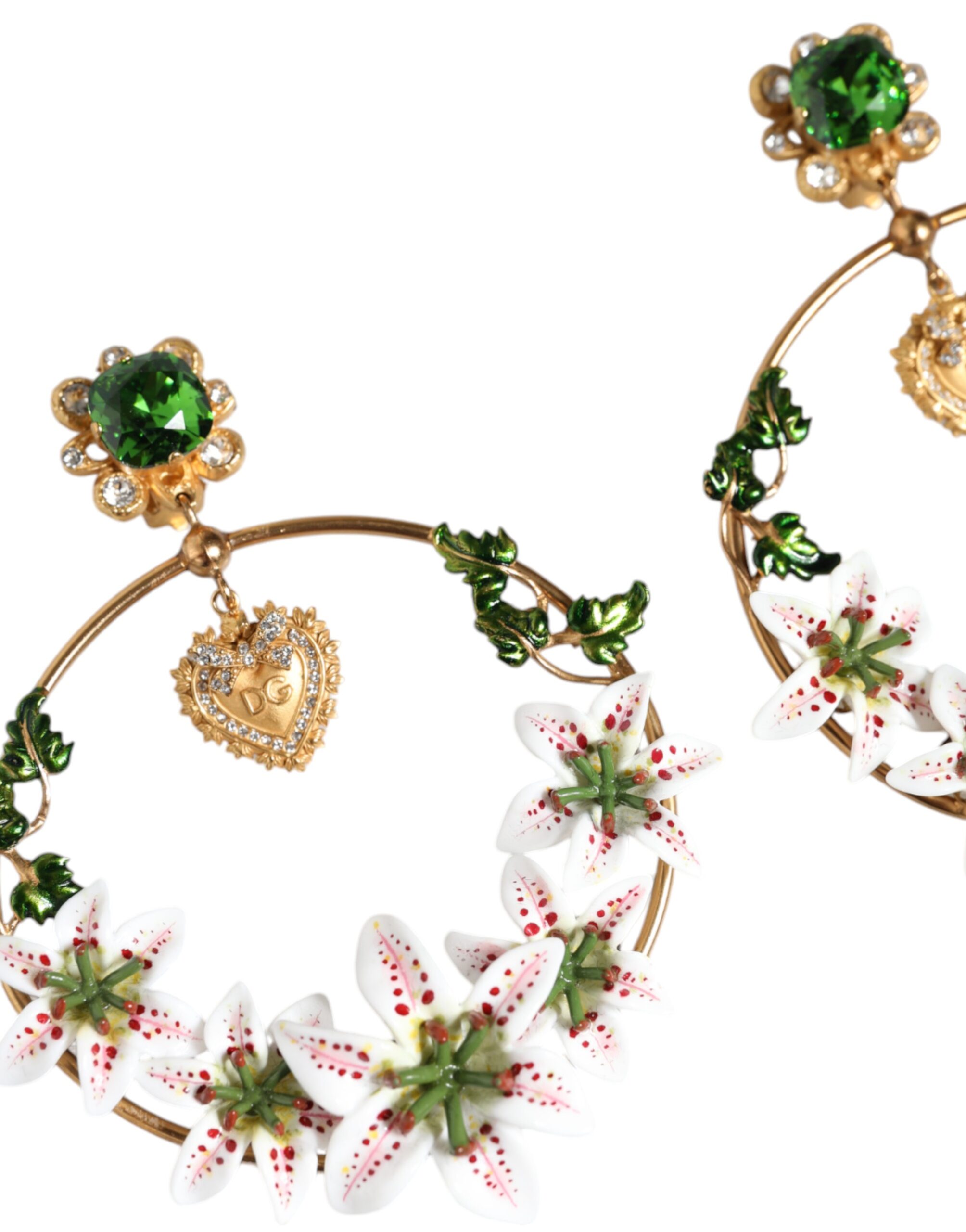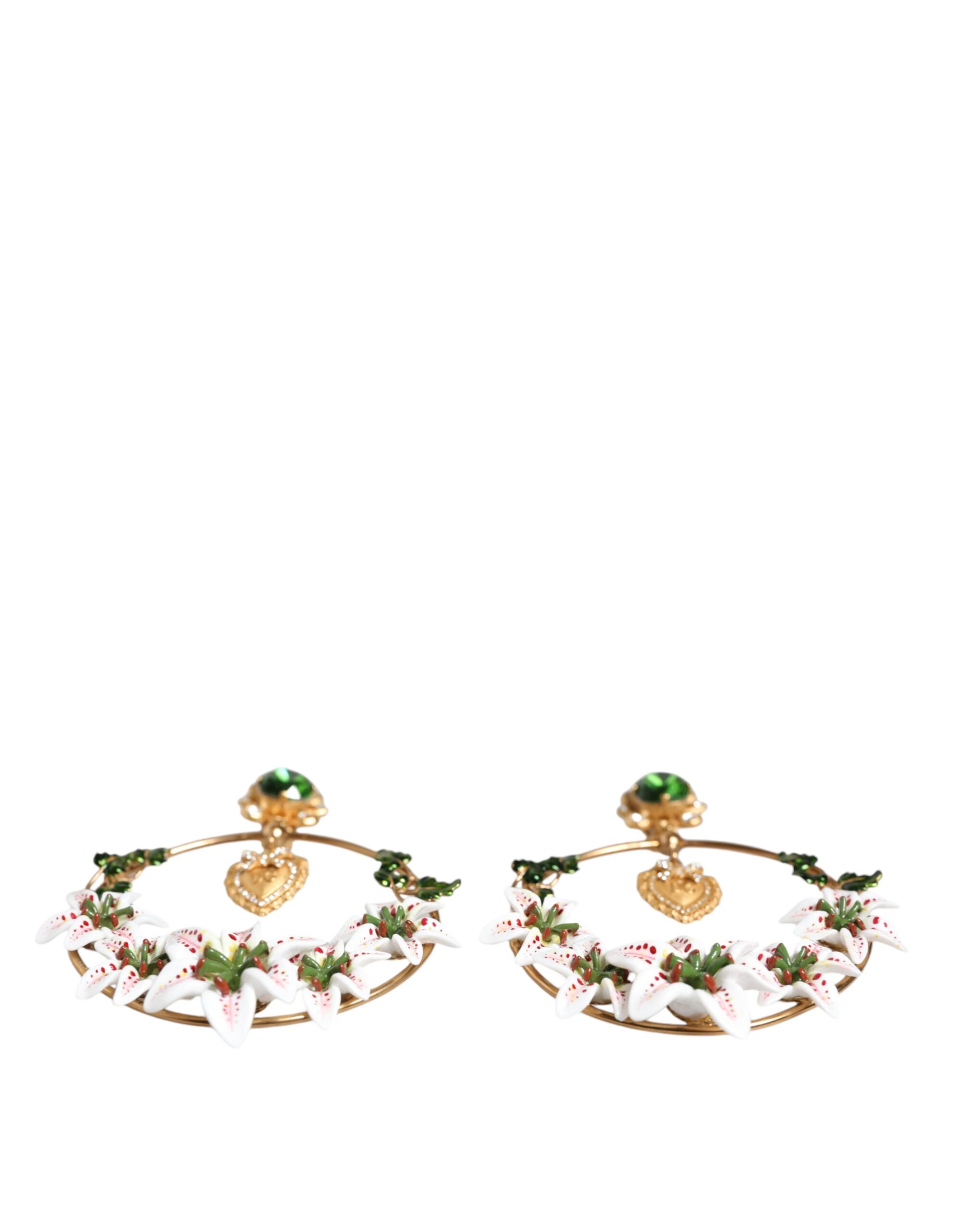 Gold Tone Brass Crystals Lily Resin Devotion Earrings