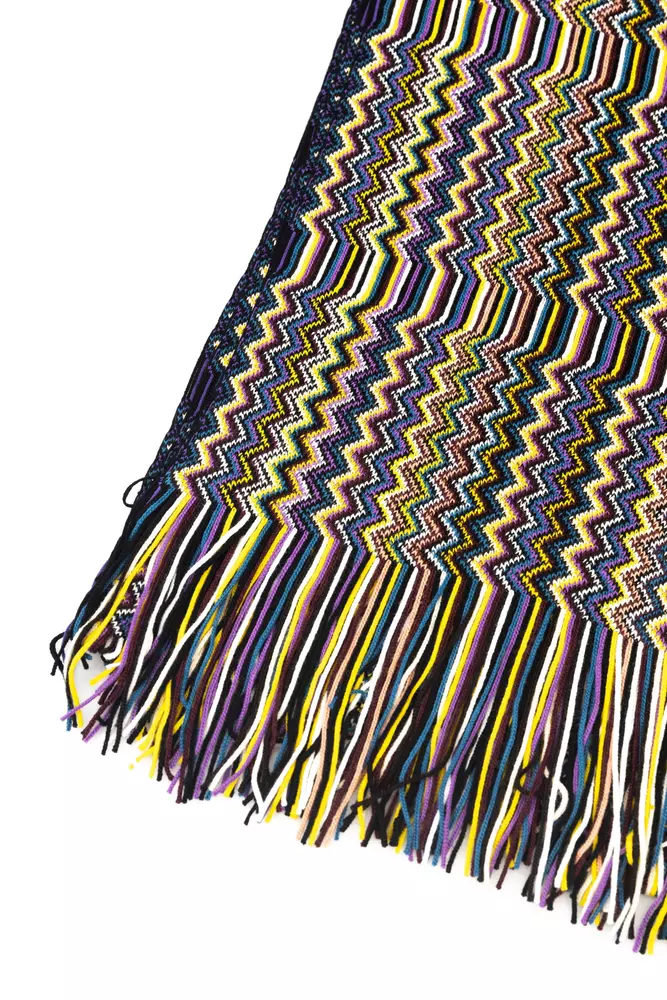 Wrap yourself in the luxurious warmth and bohemian elegance of this Missoni fringed scarf. Known for its signature crochet knits and geometric designs, Missoni brings its iconic style to this beautiful accessory. Displaying a kaleidoscope of colors, this scarf is an artistic statement piece that will elevate any outfit with its unique, Italian flair. Ideal for transitioning from crisp autumn days to chilly winter evenings, it promises to keep you cozy with its soft blend of wool and acrylic. Experience the blend of comfort and high fashion with this stunning Missoni scarf.