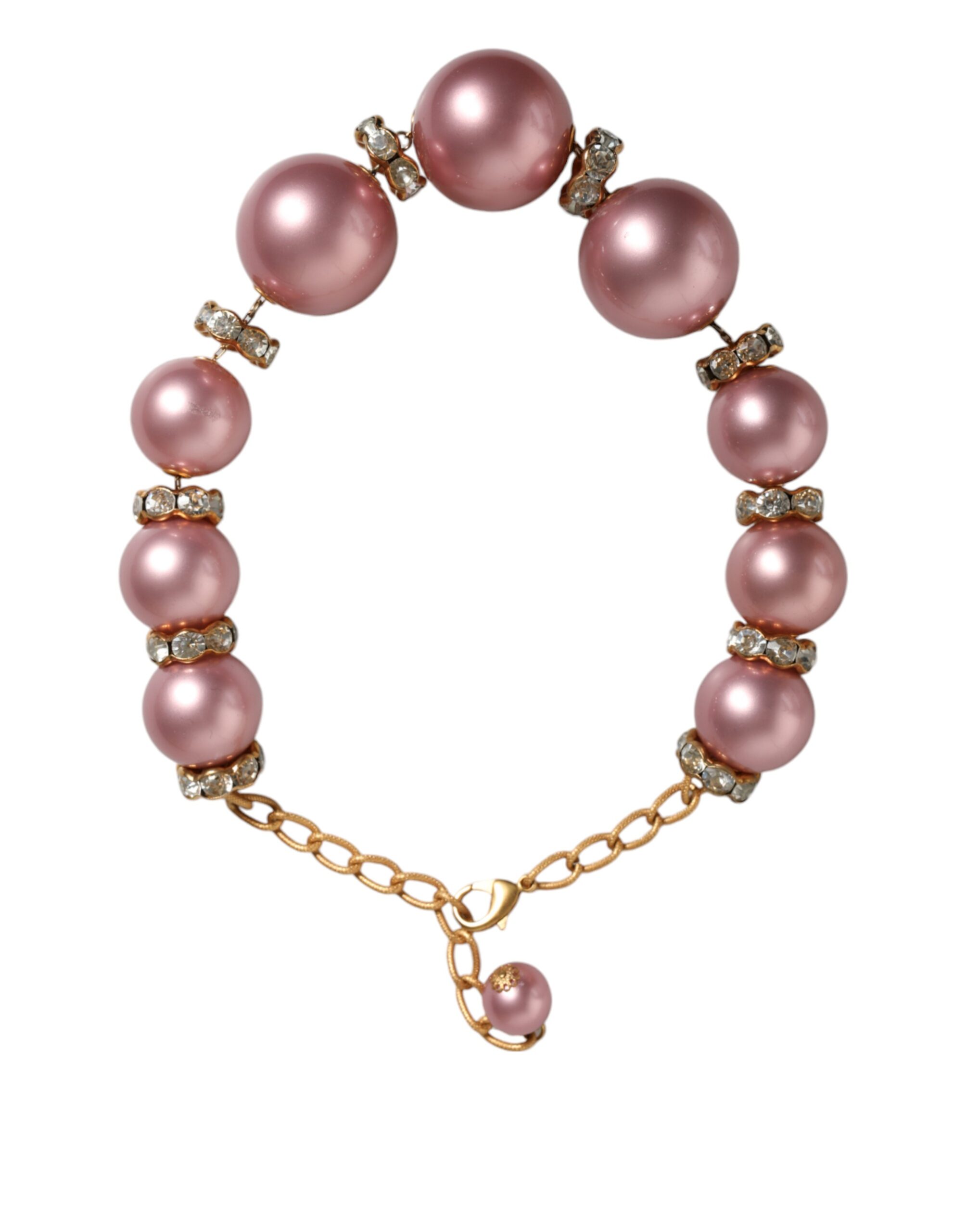 Pink Maxi Faux Pearl Beads Crystals Gold Chain Necklace