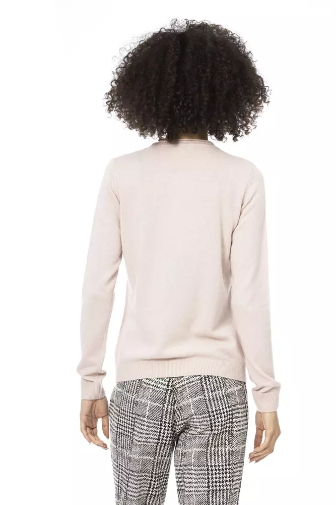 Indulge in the luxurious blend of comfort and elegance with Baldinini Trend’s exquisite long sleeve shirt. Crafted with a premium mix of materials that ensures warmth and softness, this piece is a testament to fine Italian craftsmanship. Its subtle pink hue exudes femininity and style, while the signature Baldinini monogram in metal adds a touch of sophistication. The front closure with buttons provides a seamless look, making this sweater a versatile addition to your wardrobe. Perfect for those who appreciate the blend of high fashion with classic design.