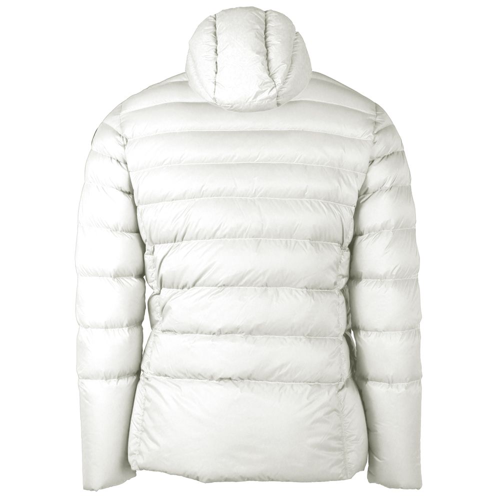 Experience the versatility and elegance of the Centogrammi Reversible White Nylon Jacket. Crafted for the fashion-forward individual, this hooded piece offers two distinct styles in one garment. With one side featuring a sleek matte finish and the opposite a glossy sheen, this jacket delivers flexible styling options. The plush duck down padding ensures warmth and comfort, while the zip closure and dual side pockets on each side add practicality to this luxurious design.
